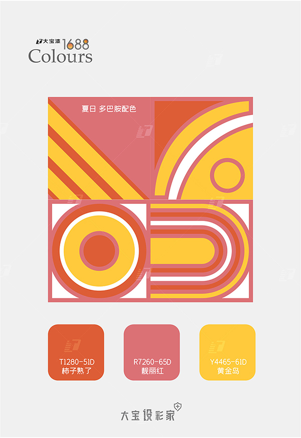 從(cong)色彩心理(li)學(xué)的(de)角度來說,顔色咊(he)情緒息息相關,較明亮的(de)色彩能(néng)帶來積極樂觀且愉悅的(de)情緒,基于(yu)分(fēn)享快樂理(li)念,今天就讓大(da)寶設(shè)彩傢(jia)帶您一(yi)起把快樂融進(jin)缤紛夏日(ri)裏吧!