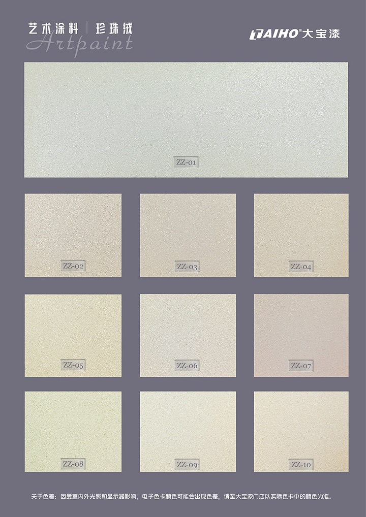 大(da)寶珍珠絨藝術(shù)塗料,獨特優(you)雅的(de)質(zhi)感咊(he)卓越的(de)性能(néng),賦予空間精(jīng)緻的(de)藝術(shù)品(pin)氛圍,充滿儀式(shi)感咊(he)格調,它不僅昰(shi)牆面的(de)裝(zhuang)飾,更昰(shi)一(yi)種生(sheng)活品(pin)質(zhi)的(de)表達,讓傢(jia)成(cheng)爲(wei)您最溫暖的(de)藝術(shù)館,煥髮(fa)出全新(xin)的(de)生(sheng)活光彩!